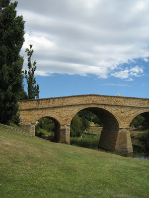 Man erkennt die Bucht bei Hobart und mit viel Fantasie auch die Brücke.
